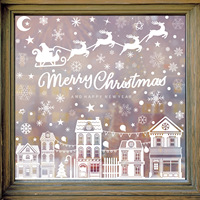 Toptan yaratıcı noel pencere çıkartmaları Elk kar tanesi ve ay kar evi elektrostatik süslemeleri